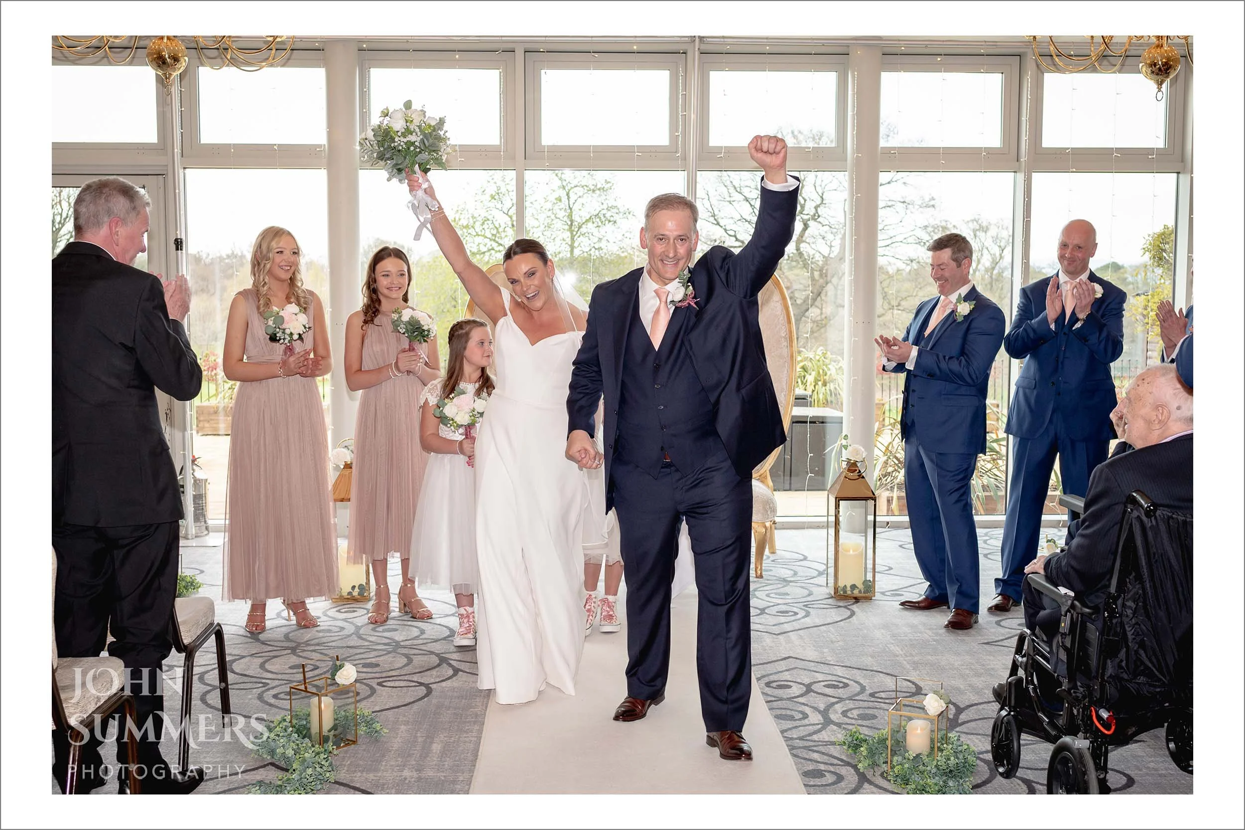 Love the celebrations at the end of a wedding ceremony like here at Glenbervie House in Larbert as Louisa & Mark walked down the aisle to start their married life.